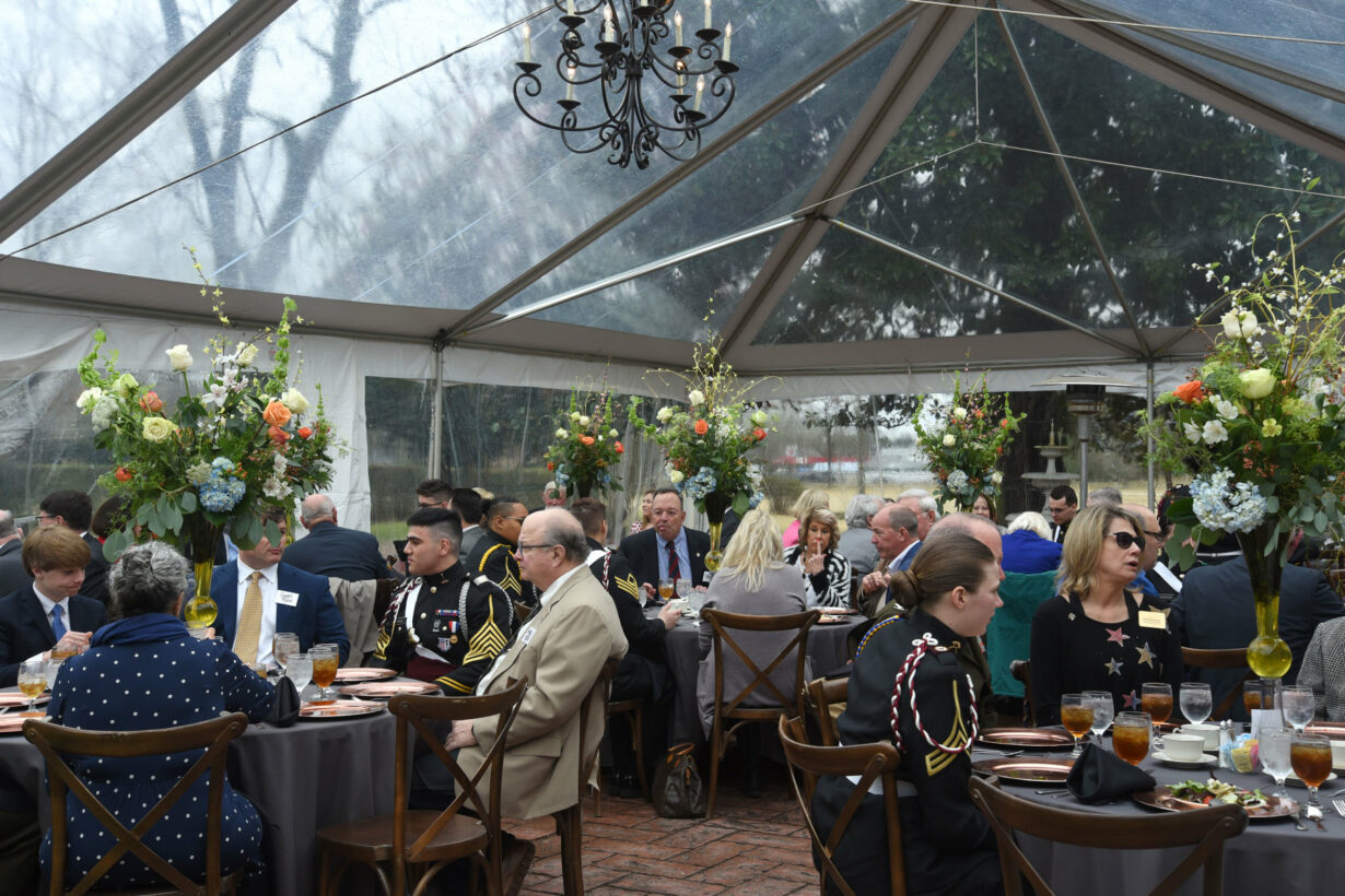 The Marion Military Institute (MMI) Foundation honored its most generous donors with a special luncheon, ceremony and parade on Friday, Feb. 24. Invited to this exclusive event were individuals, businesses and organizations inducted into the President’s Circle ($10,000-$499,999) and Order of the Crest ($500,000+) cumulative giving levels, as well as JT Murfee Legacy Society (estate planning) and Foundation Scholarship donors. The day’s focus was to publicly recognize and thank these donors for their contributions over a lifetime. As such, the entire MMI Corps of Cadets, plus faculty and staff, gathered in the historic Chapel to honor these steadfast supporters.